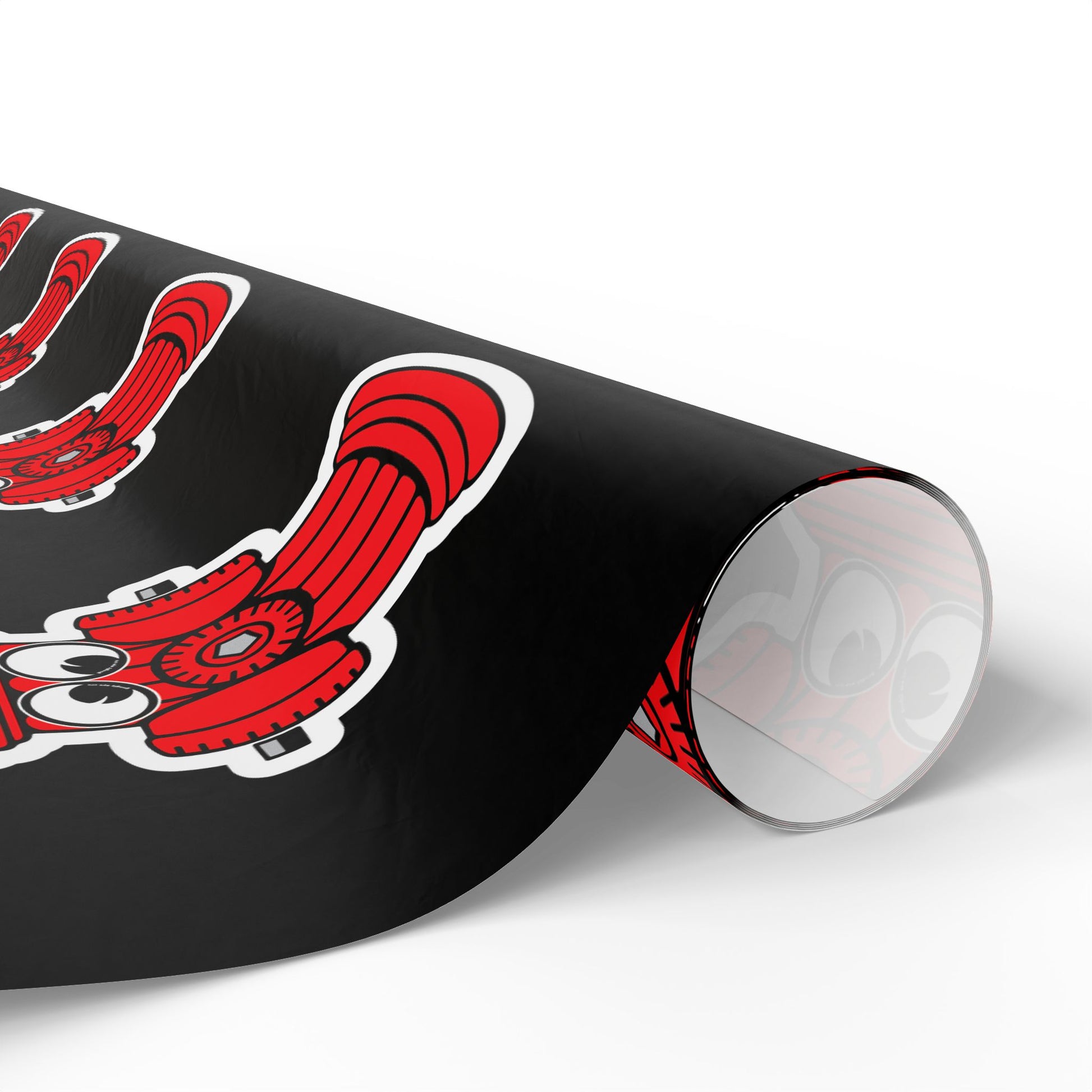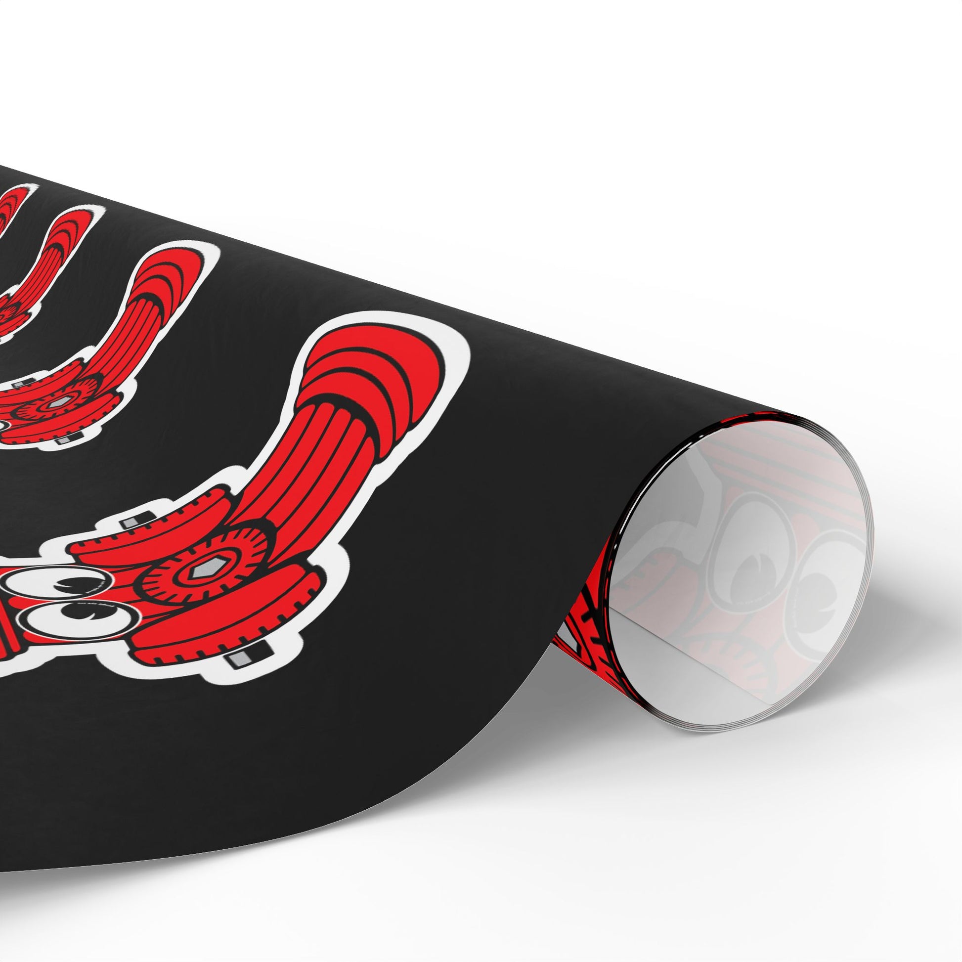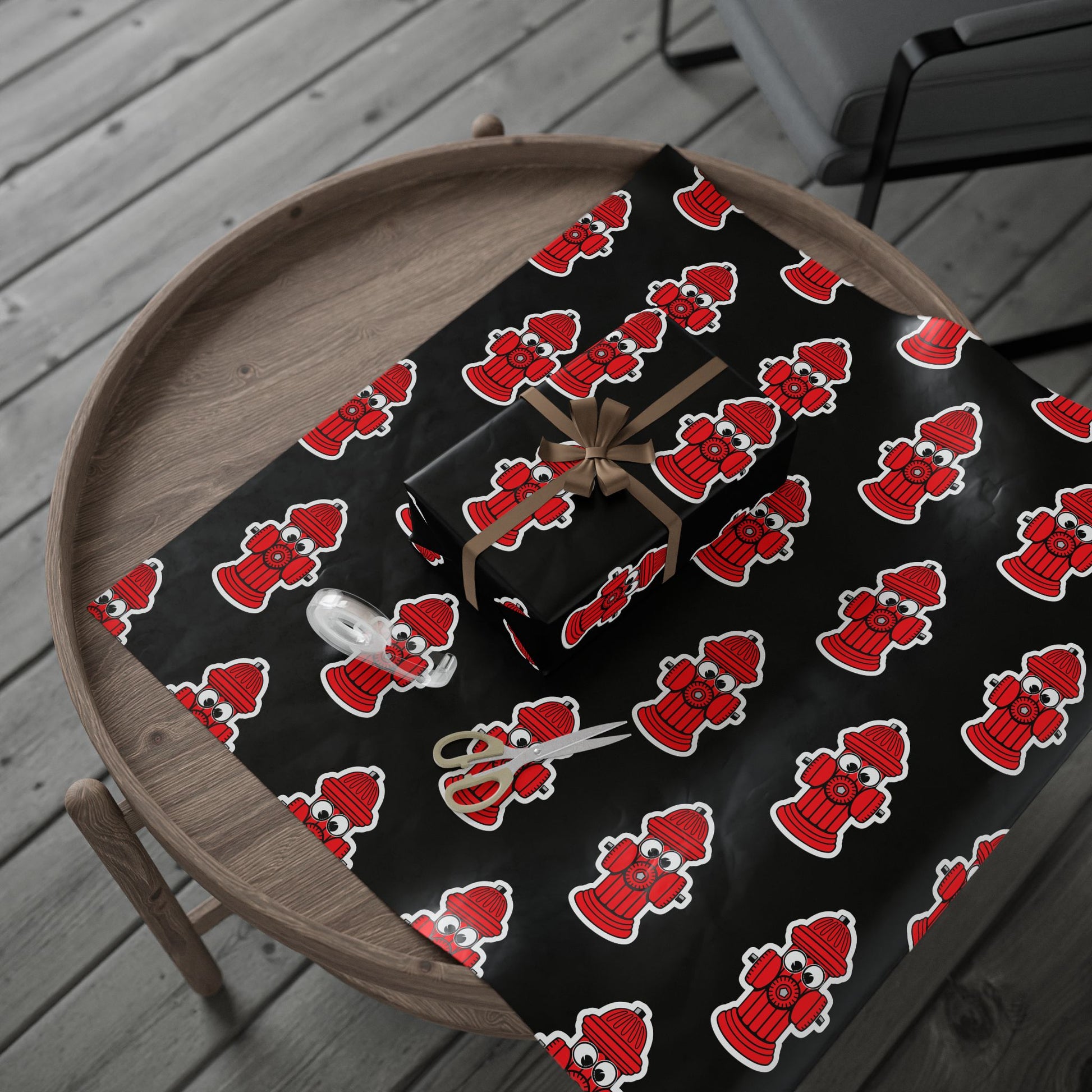 Wrapping Paper - Red Fire Hydrants with Googly Eyes on Black Background